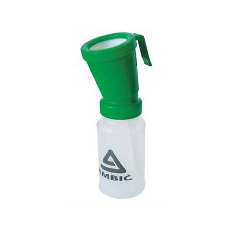 La taza para inmersión de tetinas antirretorno MiniDipper es una herramienta indispensable en la lechería para la importante tarea de inmersión previa y posterior. El recipiente antirretorno tiene un revestimiento interior profundo en la copa que evita que el recipiente usado regrese al depósito. La taza en ángulo con borde ancho a prueba de salpicaduras permite al usuario alcanzar fácilmente los cuatro cuartos, pero solo contiene 1/2 oz (15 ml) de salsa en comparación con 1 oz completa. (30 ml) de capacidad de los cucharones para tetinas antirretorno Ambic regulares. El Ambic Dipper está hecho de materiales duraderos y resistentes a los químicos y cuenta con una boca ancha para facilitar el llenado.