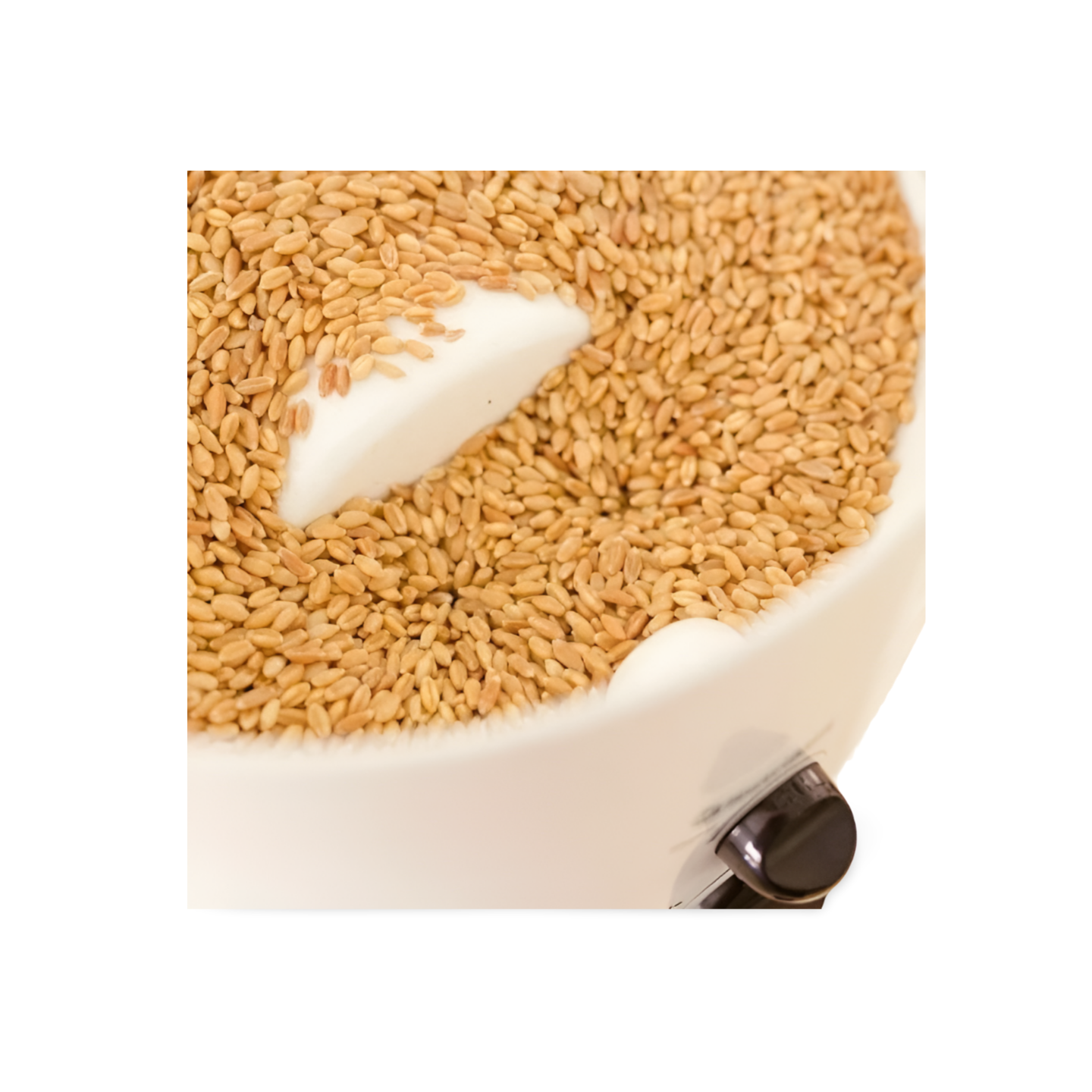The new design of the NutriMill Classic's impact chamber allows you to put grain into the hopper before you turn it on with no risk of plugging the mill, which can happen with older mill designs. Even if stopped during grinding, the NutriMill Classic restarts again without trouble.